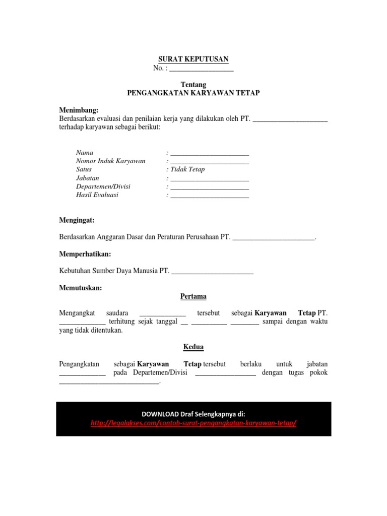 Isi Surat Keputusan Pengangkatan Bank Indonesia